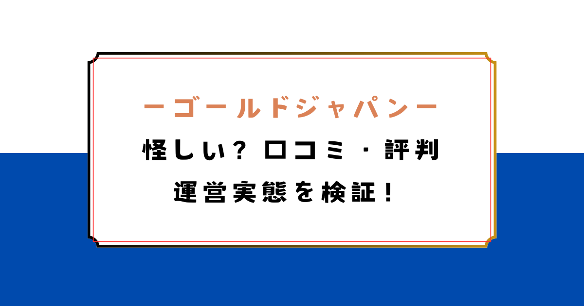 ゴールドジャパンは怪しい?口コミ・評判・運営実態を検証!
